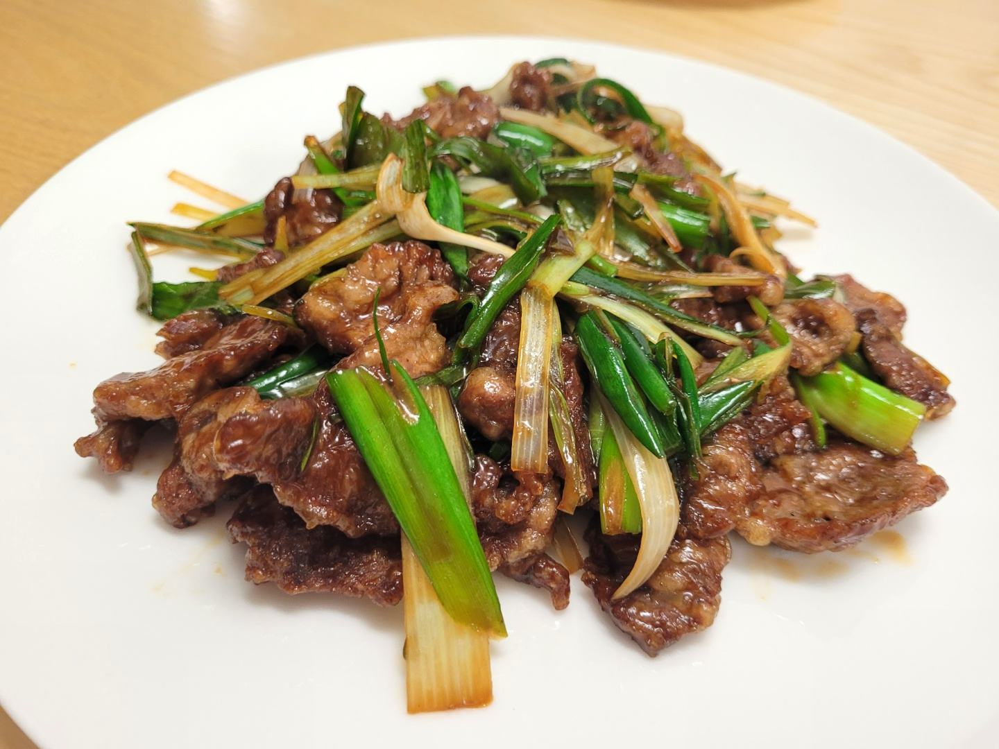맛있게 파와 볶아진 몽골리안 비프 완성입니다.